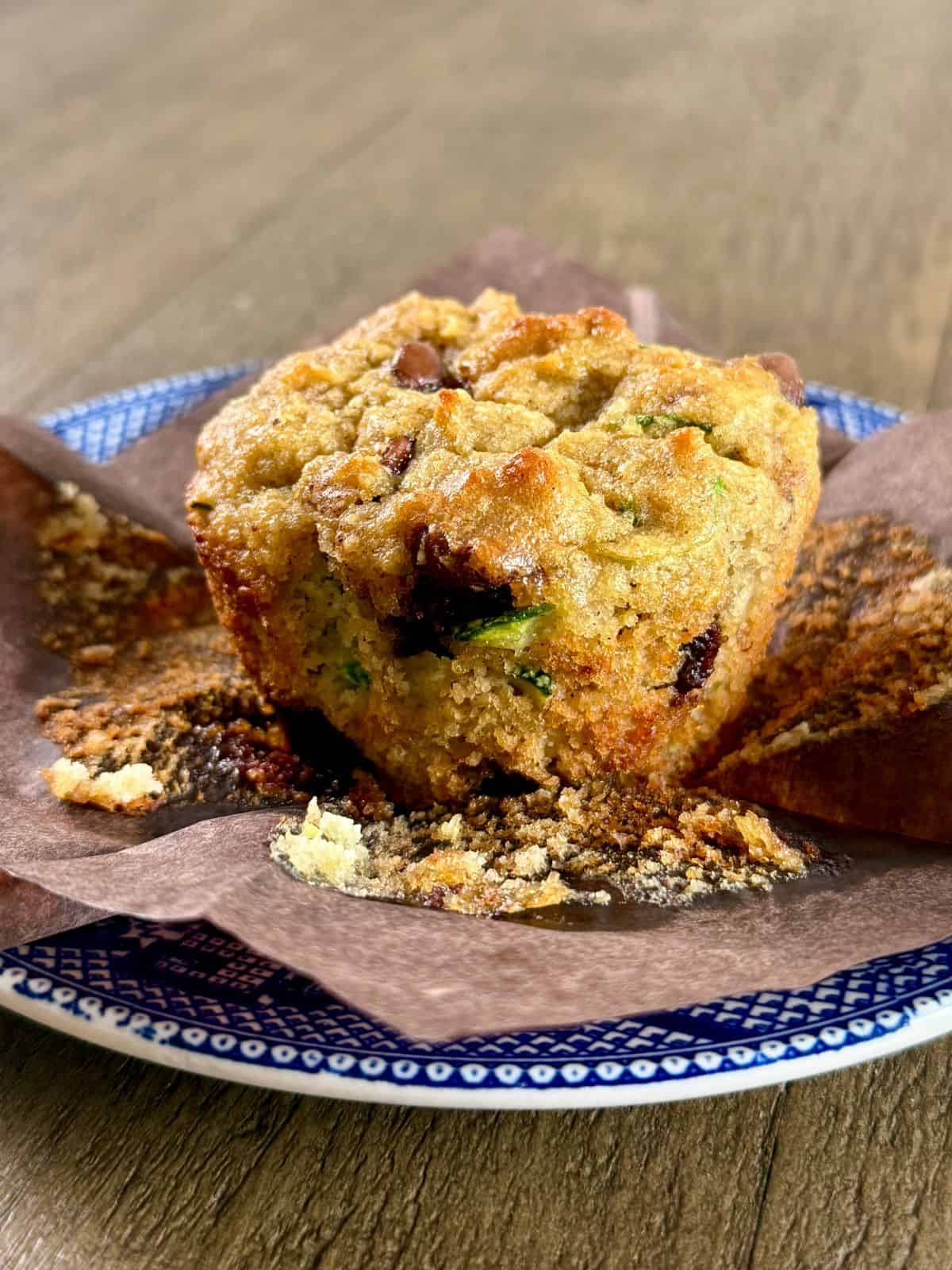 Gluten free and sweetened with ripe banana and a hint of honey, these moist zucchini chocolate chip muffins are perfection.